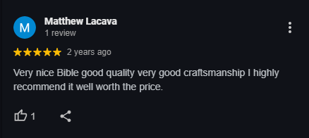 NOTE: All Bibles are MADE TO ORDER. Current wait time is 3-4 weeks once I recieve your bible